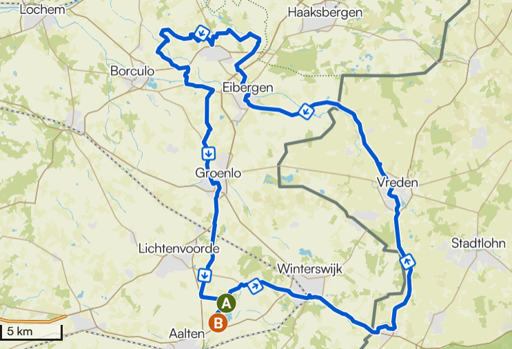 In de buurt De linkjes geven toegang tot het komoot-omgeving van de betreffende route Hardlopen Rondje Slingeplas 5 km Rondje Miste 13 km Ronde Korenburgerveen 17 km Wandelen Aalten buitengebied 12,5 km Berenschots Watermolen 24 km naar supermarkt Bredevoort 5 km Fietsen Rondje Bocholt 58 km Rondje Eibergen 96 km Rondje Aalten-Dinxperlo 51 km